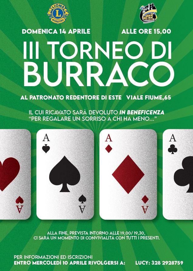 III Torneo di BURRACO presso il patronato REDENTORE di Este.
